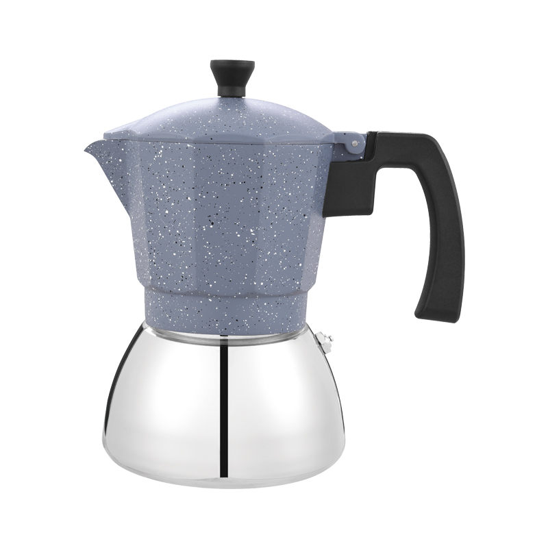 La cafetera de aluminio y acero inoxidable está fabricada con materiales de alta calidad que garantizan un rendimiento duradero y resistencia a la corrosión. El revestimiento interior está hecho de acero inoxidable apto para uso alimentario, lo que proporciona un entorno seguro e higiénico para su café, mientras que la carcasa exterior está fabricada con aluminio duradero, que ofrece una excelente conductividad del calor y una distribución uniforme. Esta combinación no sólo mejora el sabor de su café sino que también garantiza que la cafetera siga siendo liviana y fácil de manejar.